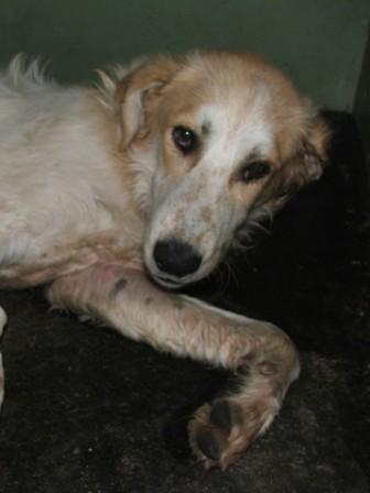 vereitert, er völlig verwahrlost und unterernähert.