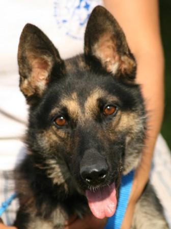 hellen Augen sind aufmerksam, der Körper ist unruhig.